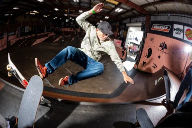 Chris “Cobra” Cole wastes no time and blasts a Switch Frontside Flip down the