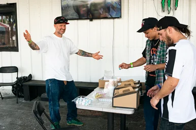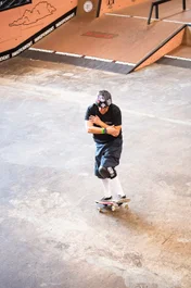 Trent McClung, getting those trucks just right for tomorrow's Qualifier.