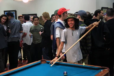 Even Jitt Squad member Justin Zaragoza made it out past his bedtime for the video premiere. The pool table was a popular spot that night.
