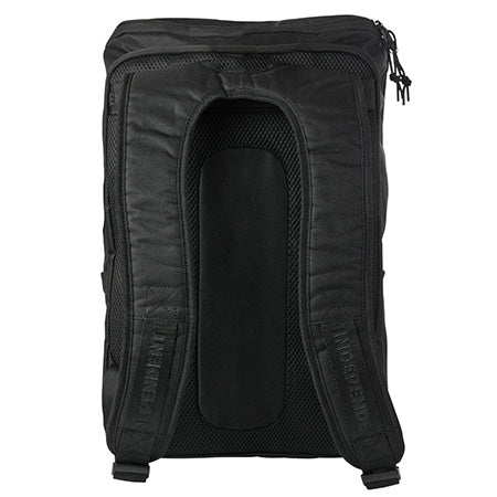 The Indepndent Bar Logo backpack features adjustable skateboard straps on exterior with abrasion resistant materials, butterfly zipper closure for main compartment, stationary organizer, padded laptop/tablet pocket, water bottle side pocket, and abrasion resistant Independent Bar logo.
