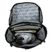 The Independent BTG Service backpack features diamond ripstop body, durable PVC bottom, padded diamond quilted back, adjustable cinched main compartment with flap secured with dual clips and webbing loops, front exterior pocket with detachable key chain, interior padded sleeves, side pockets with elastic, top handle opening with adjustable straps, printed lining, custom woven labels and embroidered logos.