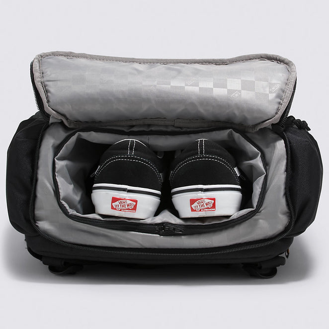 From the skatepark to wherever your day takes you next, the Vans DX Skatepack is a deluxe backpack made with CORDURA® fabrics that are recognized for their long-lasting durability and resistance to abrasion, tearing, and scuffs. But beyond the durable exterior is a wealth of elevated features that keep your stuff safe and make your life easier. From the adjustable skate straps and removable shoe compartment to the ergonomic, padded shoulder straps and adjustable sternum strap for comfort, the Vans DX Skatepack comfortably carries so much more than your board