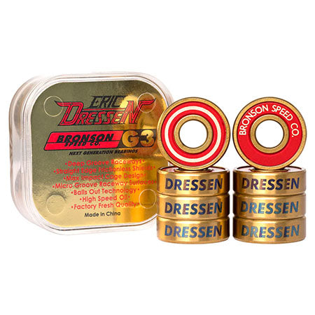 Bronson Speed Co is proud to release Eric Dressen's signature G3 bearing featuring a metallic gold and red colorway with Dressen laser etching on t...
