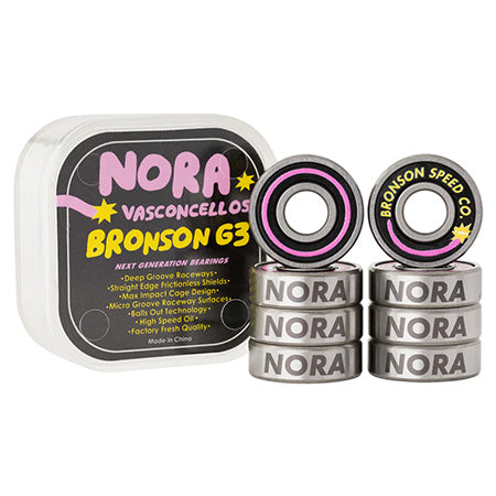 Bronson Speed Co Nora Vasconcellos Pro G3 bearing featuring artwork by Nat Russel @nathanielrussel printed with super durable ink and Nora laser et...