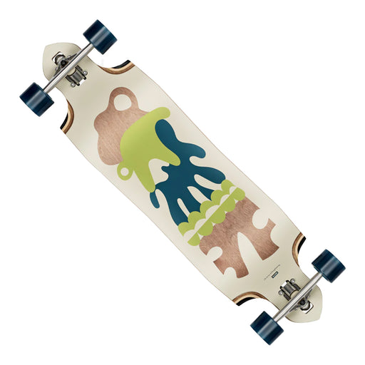 • 37.5" x 10" x 28.25" wb• Resin-8 hard rock maple• Slightly dropped platform with slight W concave• 180mm Slant reverse kingpin trucks• 70mm 83a C...