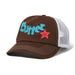 Polyester Trucker Cap, Contrast Stitching, Cotton Twill Front Panels, Mesh Back Panels With Snapback Closure, Twill Application On Front.