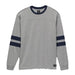 The Sanders Varsity Long Sleeve Knit Shirt is a loose fit crewneck T-shirt made of cotton sueded jersey, sporting color-blocked piecing and a woven label at the bottom hem for a subtle bit of flare.