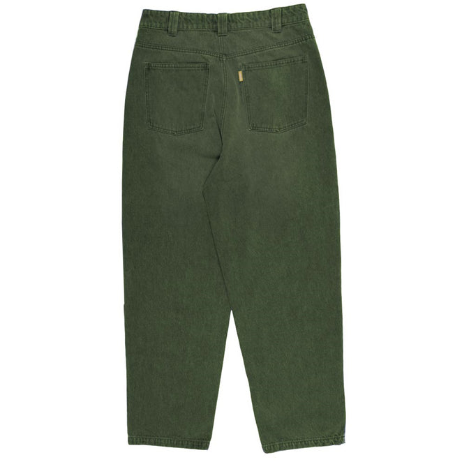 The Plaza Jeans are a new addition to the Theories pant game and made of cotton denim and feature a baggy fit with a tapered leg. Metal zipper and button closure, front coin pocket embroidery of the "T" logo, and back right pocket has the "Theories" woven label at top of pocket.