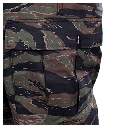 The all new Theories Swat Cargos are designed with technical advancements in mind. Made of a durable cotton, this relaxed fitting pant has a knee area that has been reinforced with an additional paneling to outlive those rugged slams. Adjustable straps at the hips to tigthen & loosen as needed after grubbing and adjustable drawstring leg cuffs. These cargos have a surplus of pockets with 2 side pockets, 2 backside pockets and 2 pockets at the thigh with a double-button & flap closure.