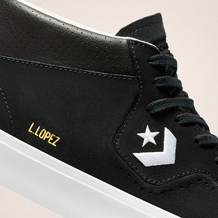 Always consistent, the Louie Lopez Pro Mid, like the low top, is designed specifically for skateboarding by the CONS team rider himself. A premium, suede upper with butted seams and rubber backing helps reduce friction and provide durability. The CX foam sockliner adds cushioning and impact protection, and a traction rubber outsole allows for better grip. It's all Louie's vision, every element to skate at his best.