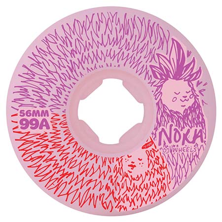 56mmOJ Wheels 56mm, 99a Nora Vasconcellos Friends Pro Chubbies featuring graphics by Nora on purple and white swirl with custom packaging and included ...