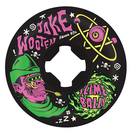 56mmSlime Balls 56mm, 97a Jake Wooten Guest Pro Vomit Mini black with multi color neon graphic art by Thomas Fernandez @liveradstudios.