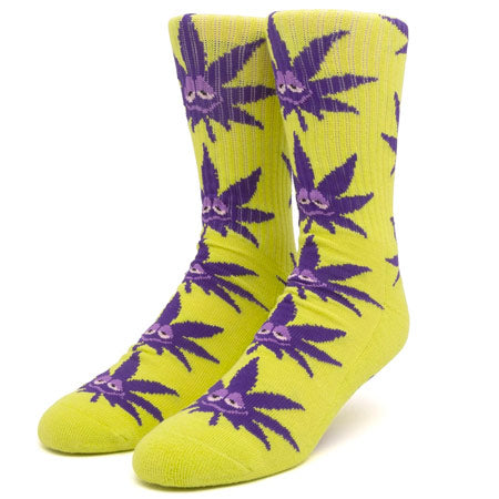 The HUF N Puff Buddy Sock features an animated HUF Plantlife™ leaf at the toe and a rising HUF smoke cloud up the body. • Cotton/poly blend crew-s...