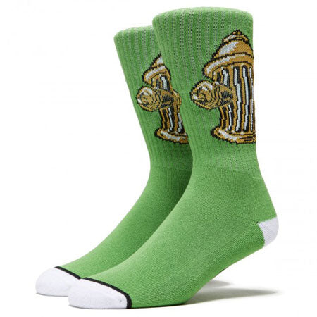 The Blown Out Sock features an oversized HUF logo for a bold vibe and is offered on a comfortable crew-length body.