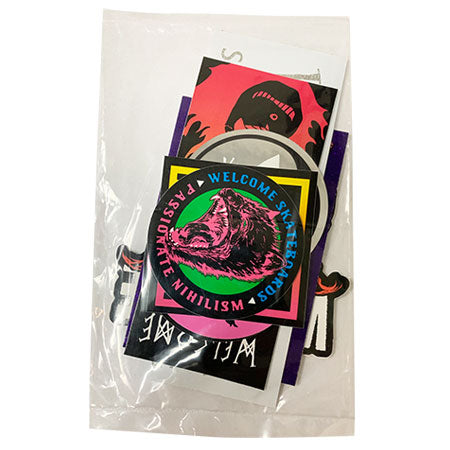 10 randomly-assorted Welcome stickers. Stickers you receive will not necessarily be the ones you see in this photo, but we promise they'll be rad.