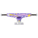 Krux K5 Nora Vasconcellos Dreams Pro DLK trucks featuring artwork by Nat Russell @nathanielrussell with multi color art wrapped purple hanger, polished silver baseplate, white cushions, and silver hardware.