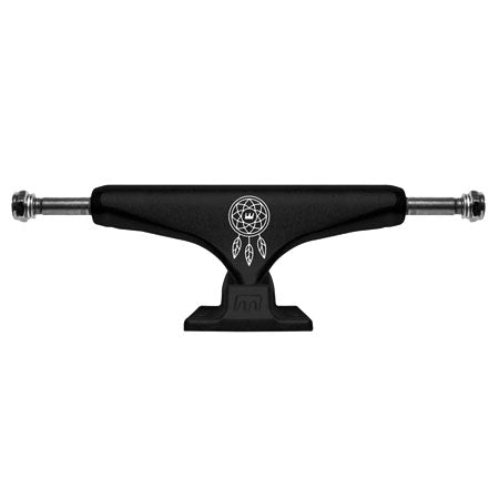 The Jose Rojo Pro Trucks feature a dream catcher imprint, black hanger and baseplate.
