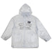 The Quarter Arch Clear Rain Jacket is constructed of clear PVC, features zip closure, an attachable hood, screen printed ack graphic and rubber patch on front left chest.