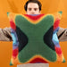 18” x 18”. Jacquard Knit. Polyfil Stuffing. 80% Polyester / 20% Cotton.