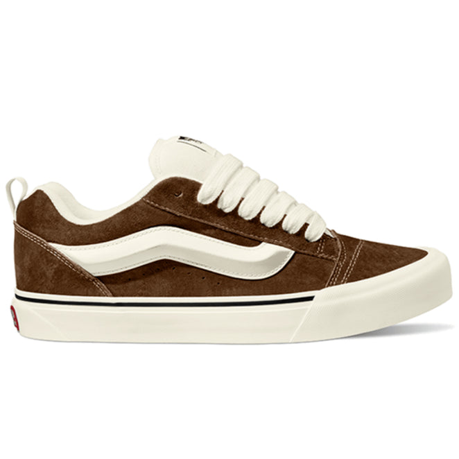 The Knu Skool is a modern interpretation of a classic 90s style, defined by its puffed up tongue and 3D-molded Sidestripe, and tied off with oversized, chunky laces. With its in-your-face profile and dramatic two-toned style details, the Knu Skool plays off of the original Old Skool while blending an icon of the past with todays trends.
